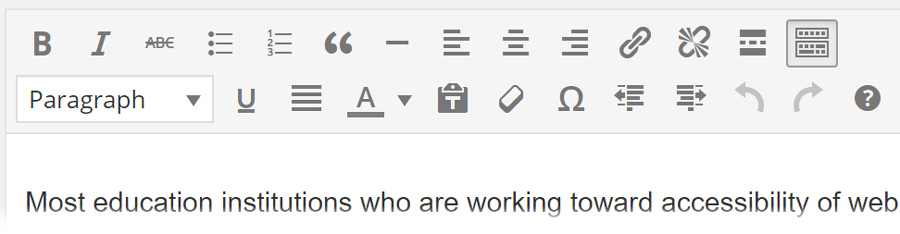It is not enough to understand accessibility principles. You must be able to apply these principles using the tools like word processors and text editors that you rely on to add content to your website. Almost all common content creation tools allow you to do things like add alternative text to images or create a heading structure, but the way this is implemented is different in almost every tool. This page outlines some of the most common tools and provides links to more detailed articles on how to leverage their accessibility features.